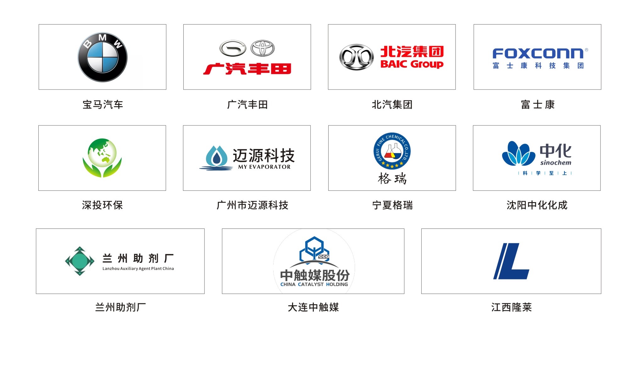 目前,公司已在成都、大連、蘇州、內(nèi)蒙古等地設(shè)立了辦事機(jī)構(gòu),服務(wù)的客戶(hù)包括深投環(huán)保、寶馬汽車(chē)、富士康、廈門(mén)嘉戎、寧夏格瑞,蘭州助劑廠、江西隆萊、大連中觸媒等行業(yè)內(nèi)領(lǐng)頭企業(yè),在國(guó)內(nèi)落地項(xiàng)目有170多家。